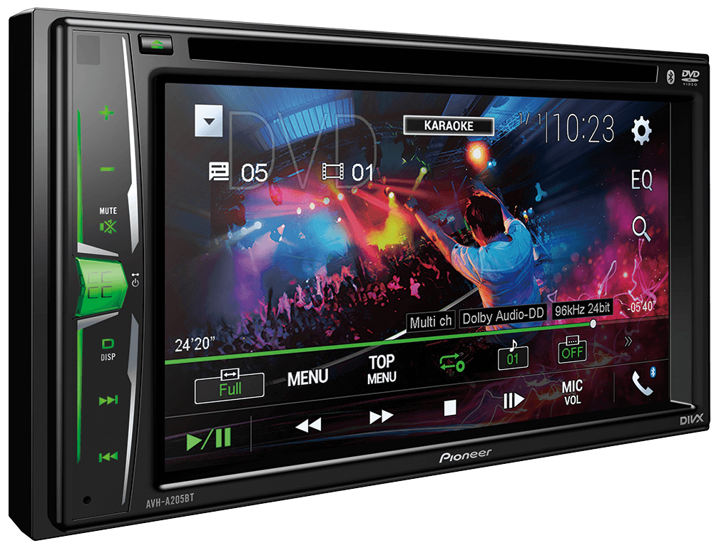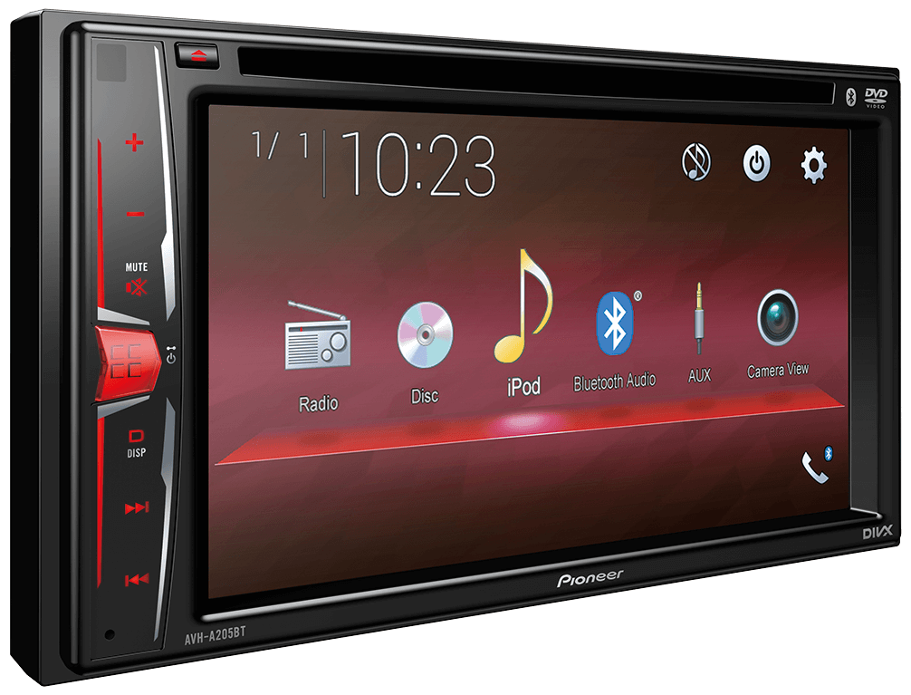 In-Dash Double-DIN DVD Multimedia AV Receiver with 6.2″ WVGA Touchscreen Display, Built-in Bluetooth, and Direct Control for iPod/iPhone