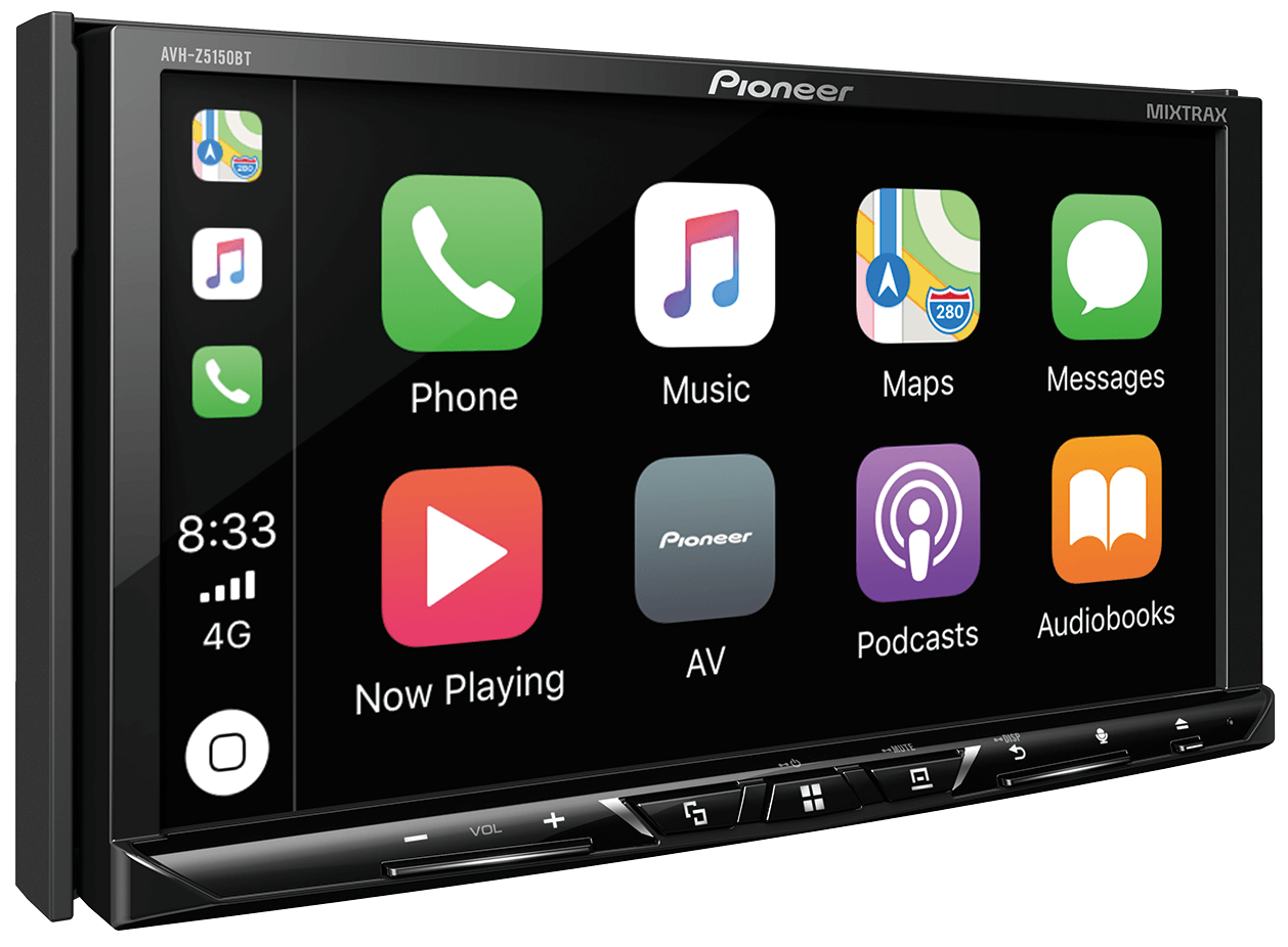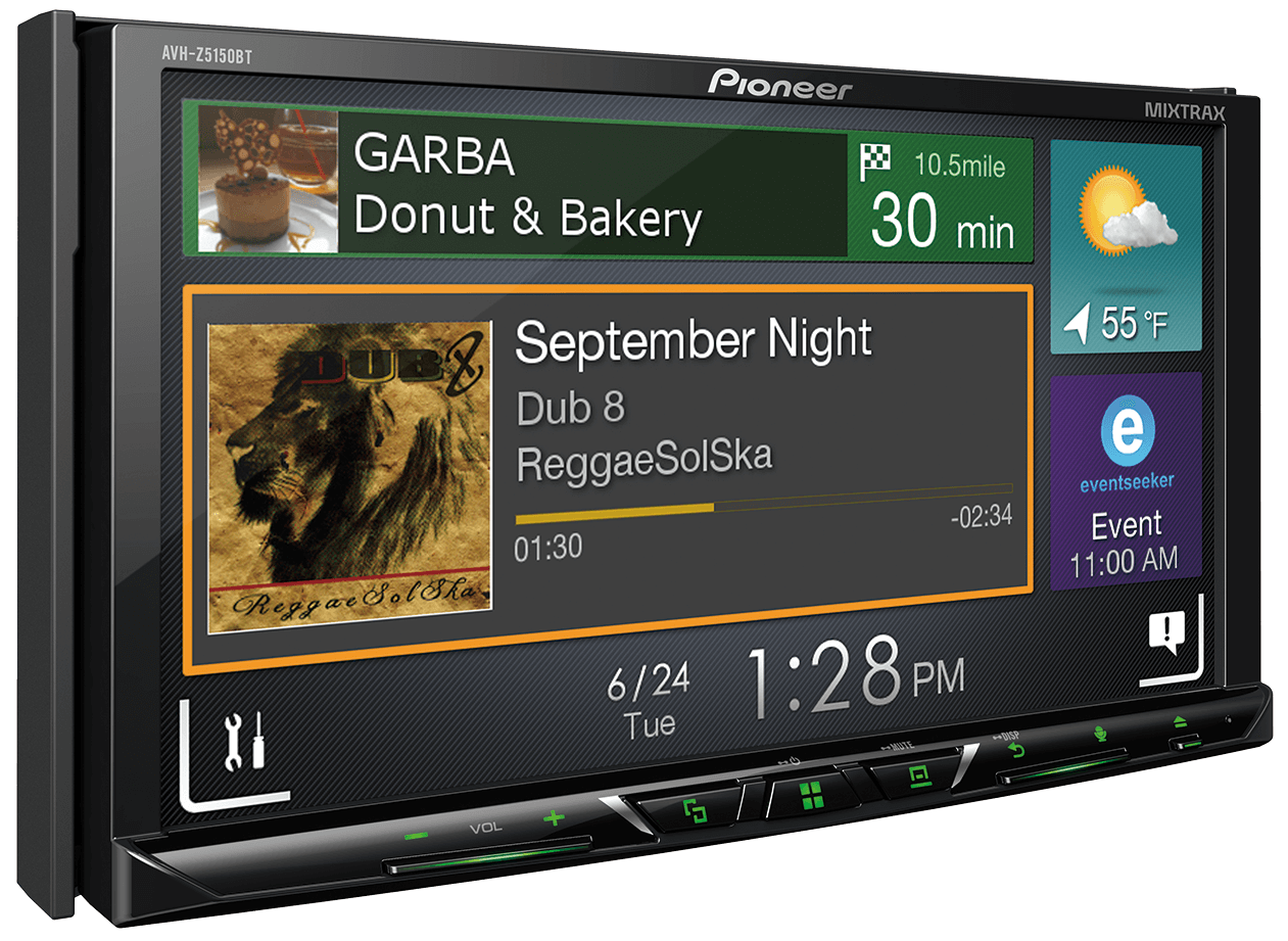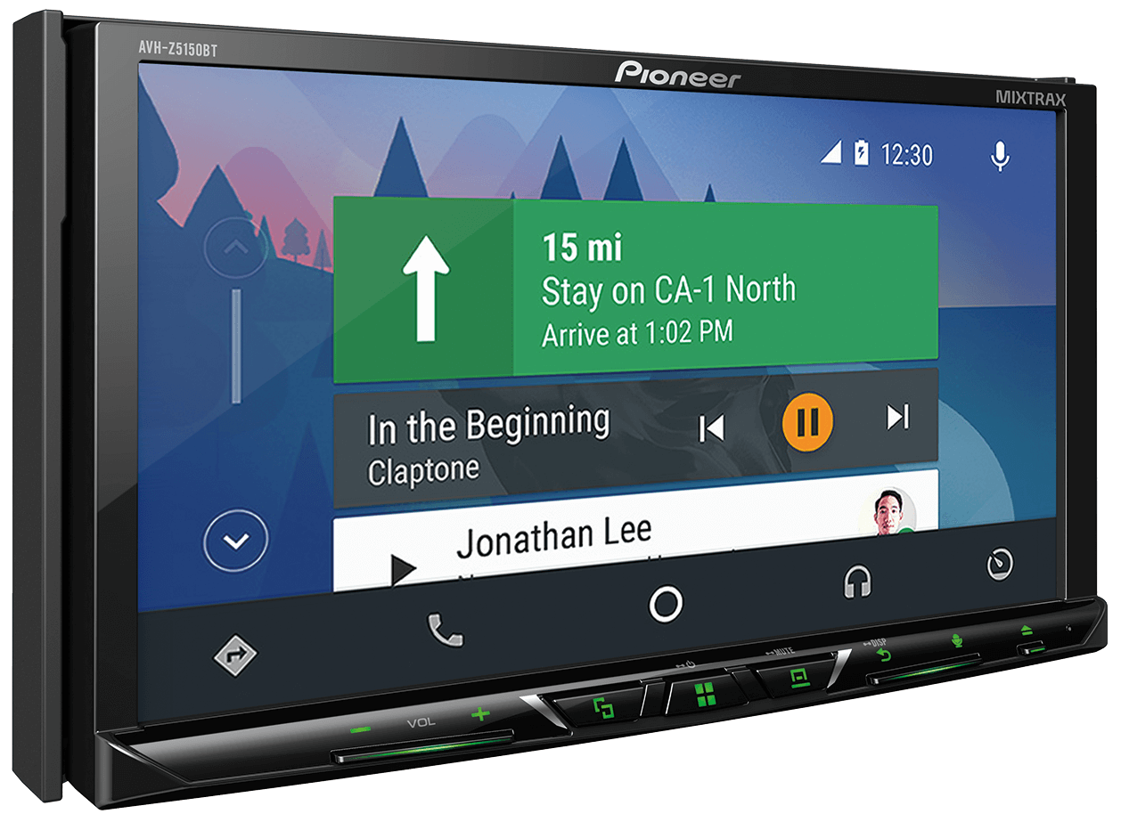 In-Dash Double-DIN DVD Multimedia AV Receiver with 7″ WVGA Touchscreen Display, Apple CarPlay, Android Auto, AppRadio Mode+, Built-in Bluetooth and Full HD Video Playback from USB Device.