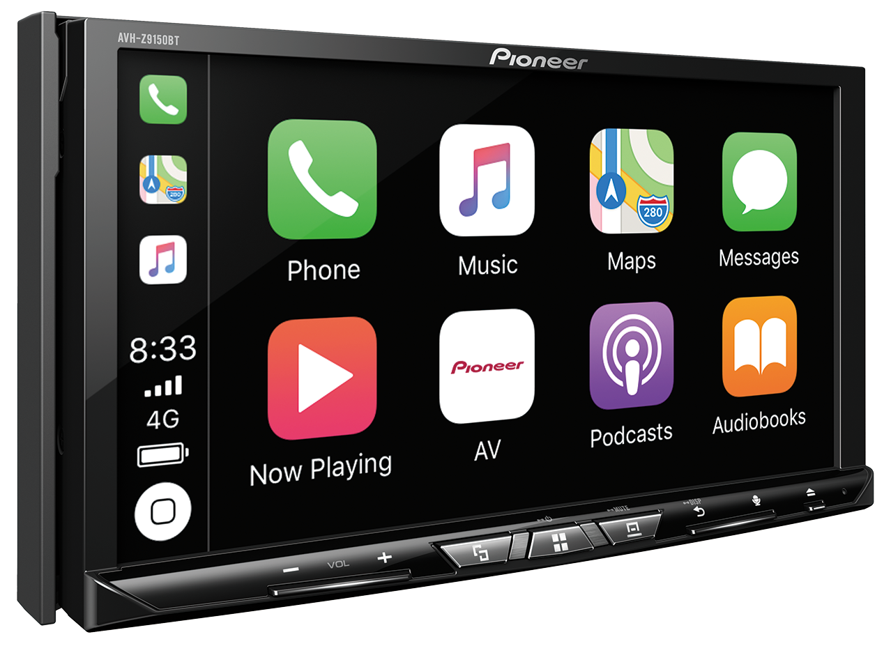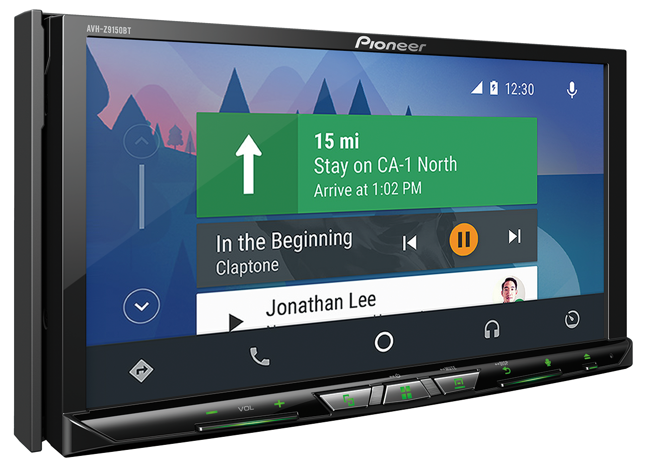 In-Dash Double-DIN Flagship DVD Multimedia AV Receiver with 7″ WVGA Touchscreen Display, Built-in Wi-Fi for Wireless Apple CarPlay and Android Auto Wireless, Dual USB, and SD Card Slot.