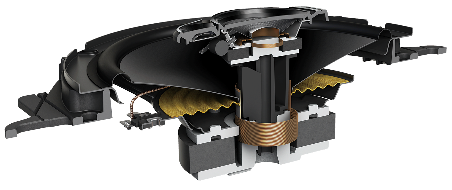 Low distortion: A new magnetic circuit and a long and symmetrical voice coil make both rich bass and low distortion possible.