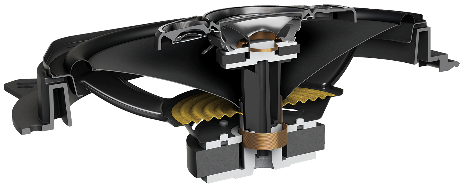 Better Power Linearity: Well-engineered spider & surround suspensions and a long and symmetrical voice coil improve linearity.