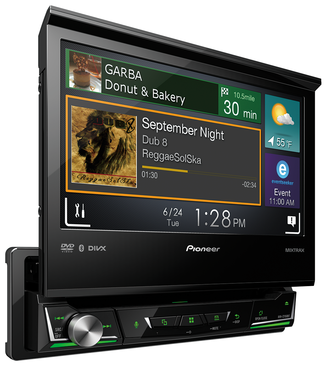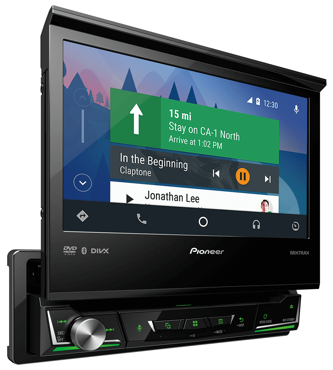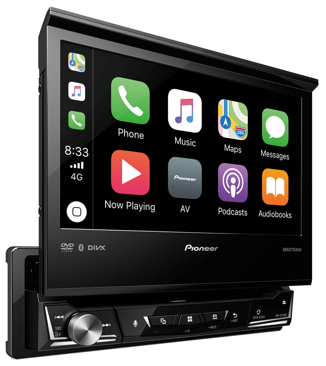 Встраиваемый в переднюю панель размера 1-DIN мультимедийный DVD-AV-ресивер с сенсорным дисплеем WVGA диагональю 7 дюймов, Apple CarPlay, Android Auto, AppRadio Mode +, встроенной технологией Bluetooth® и поддержкой воспроизведения видео в формате Full HD с USB-устройств